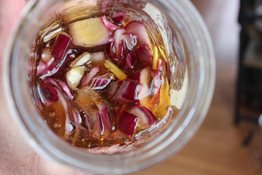 Taiati ceapa si puneti-o in borcanul de sticla. Se toarna suficienta miere pentru a acoperi bucatile de ceapa (nu trebuie sa inoate in miere, ci sa fie acoperite complet). Cand ati terminat, acoperiti bine borcanul si lasati sa stea peste noapte sau cel putin 8-12 ore. Ceapa isi va secreta sucul si se va combina cu mierea. Voila!
